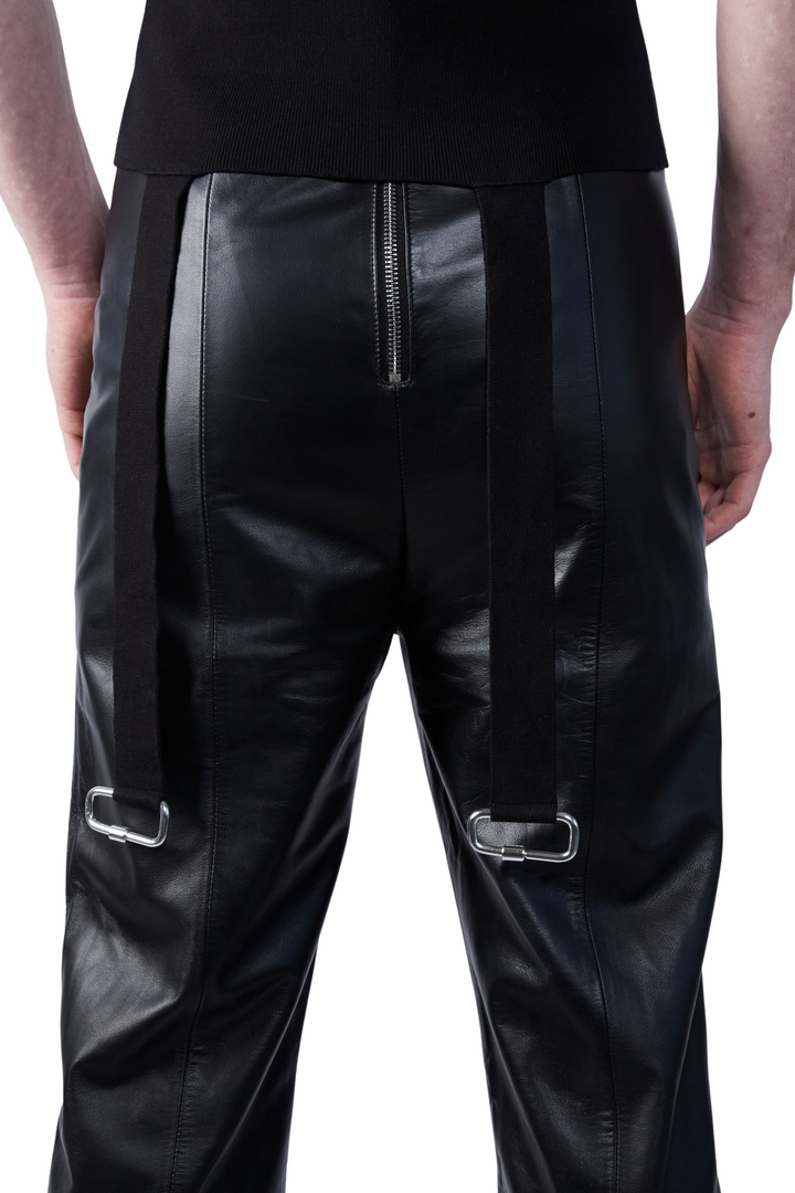 Knitted tank top crafted using the jacquard technique. Four extended straps fit with carabiners are able to be connected to accoutrements for versatile styling. Featuring a ribbed knit stitch creating an uneven rectangular detailing inspired by 90s computer analog patterns. Designed with our signature square neckline and a close to body fit.