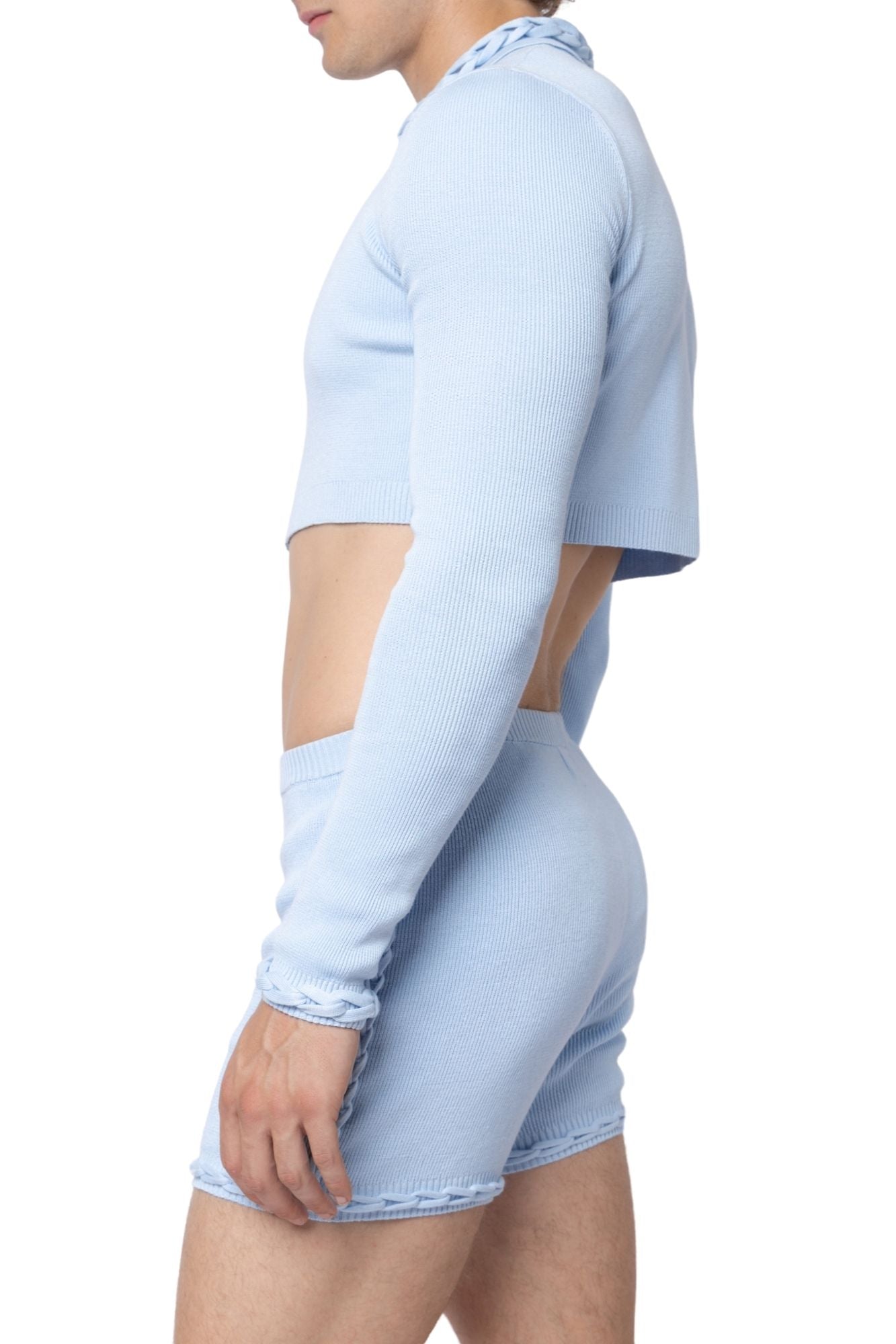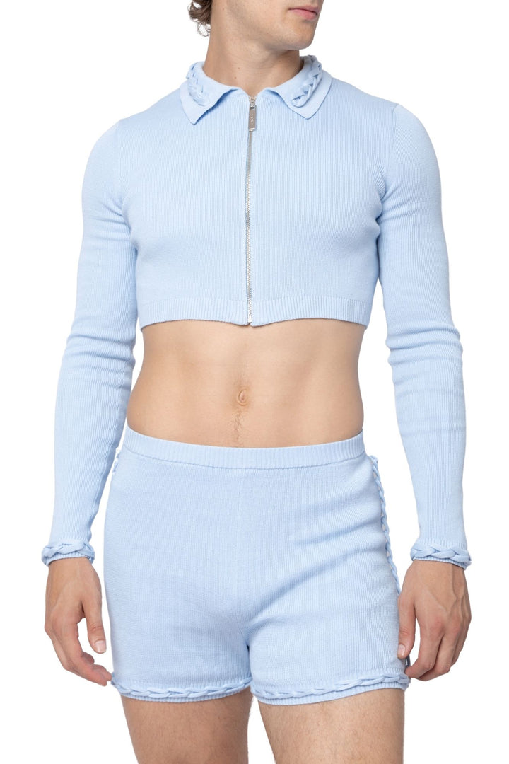 Knitted shorts with ribbed elastic waistband. Featuring chain link detailing at leg opening. Crafted in a comfortable, close-to-body fit.