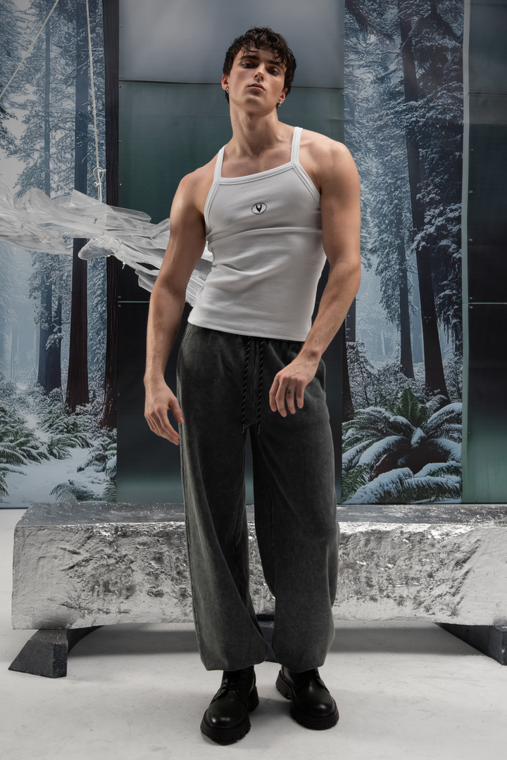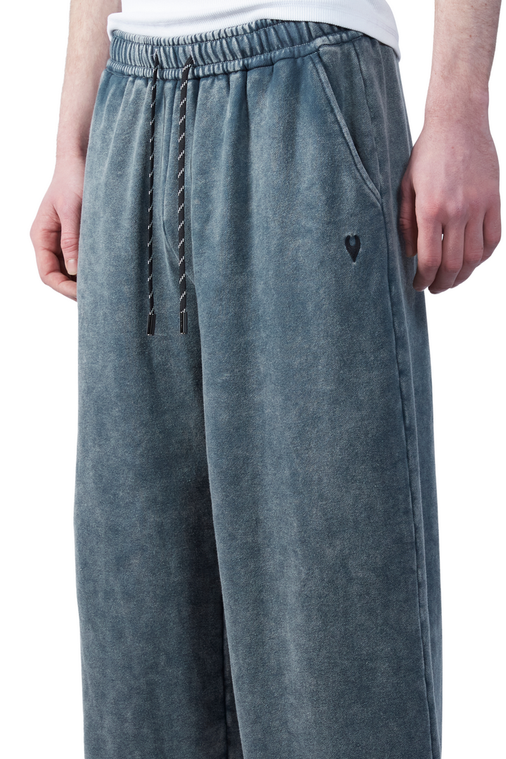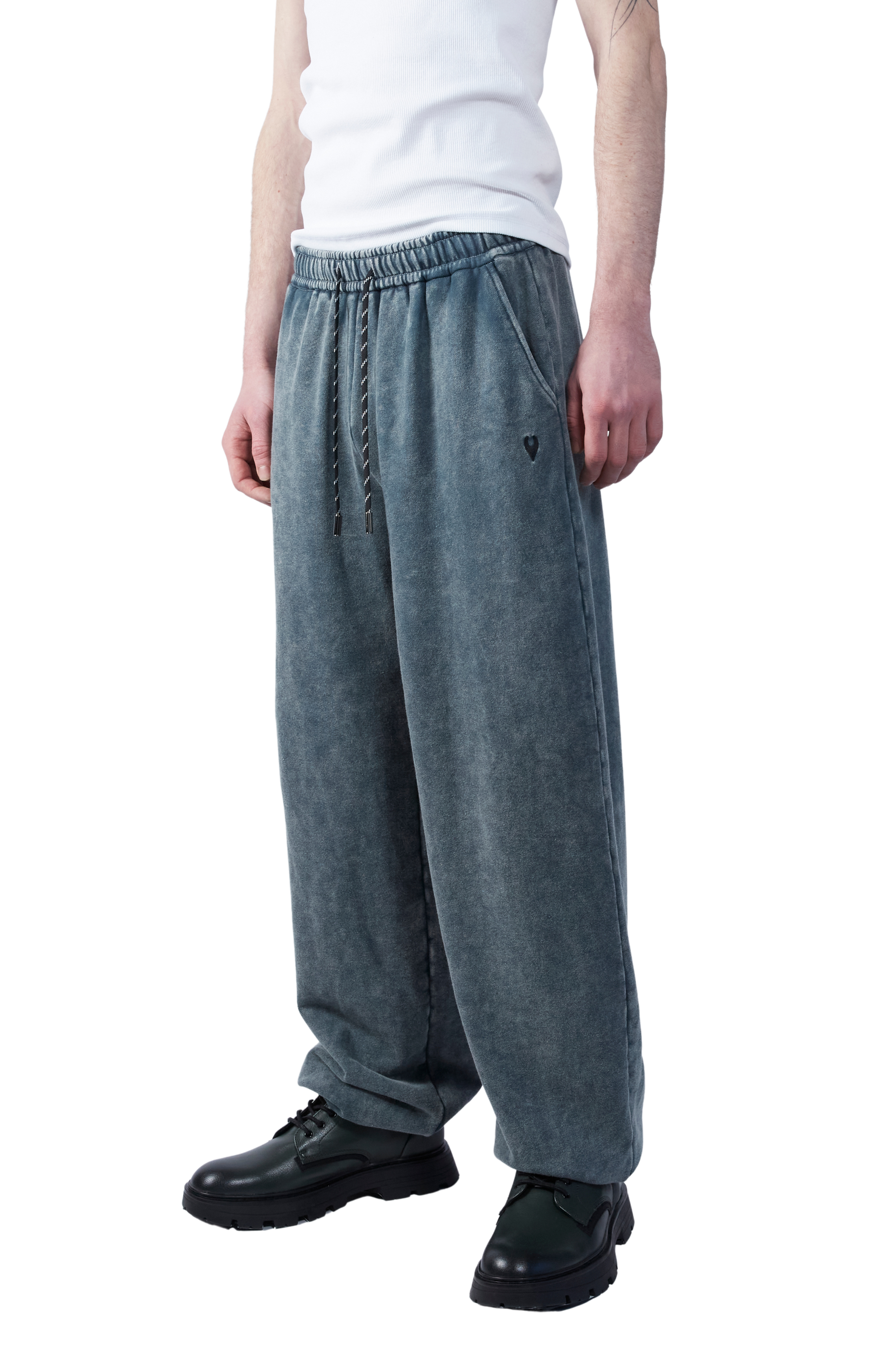 Baggy curved fit sweatpants detailed with our logo embroidery on the side. Crafted with a distressed acid-wash coloring and paracord drawstrings.