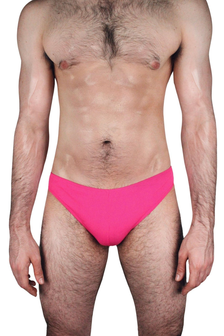 Our signature ribbed look, now available as a pair of speedos designed for swimming and any clement weather activities you'd like to partake in them. Minimal and sleek looking sans drawstrings, these briefs are super lightweight and breathable for all-day activities. Features a lined front and our logo embroidery on the side. Available in five colors: Black, White, Fuchsia, Lemon, and Royal Blue.