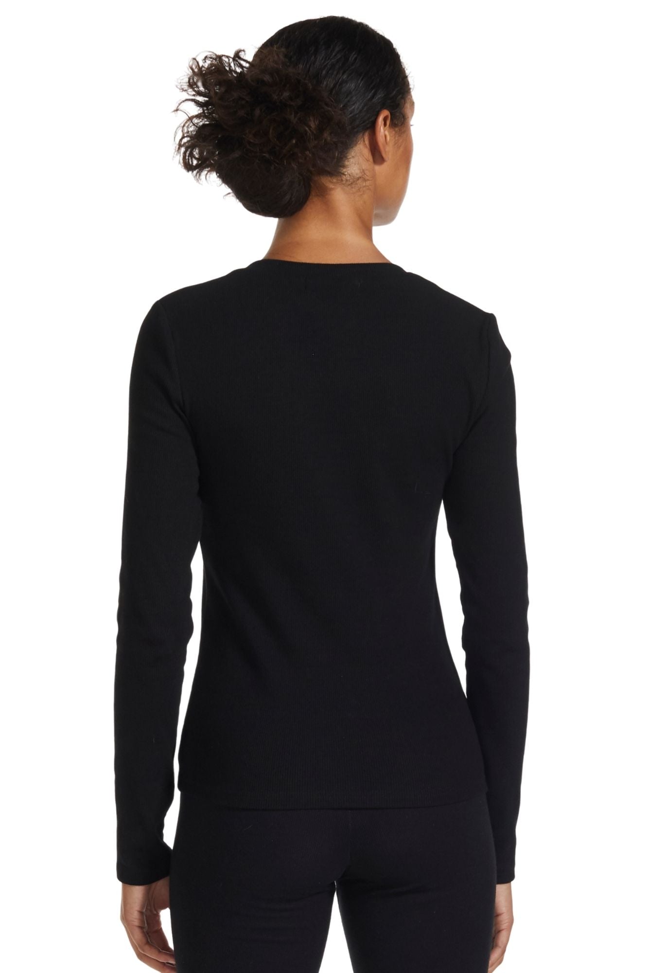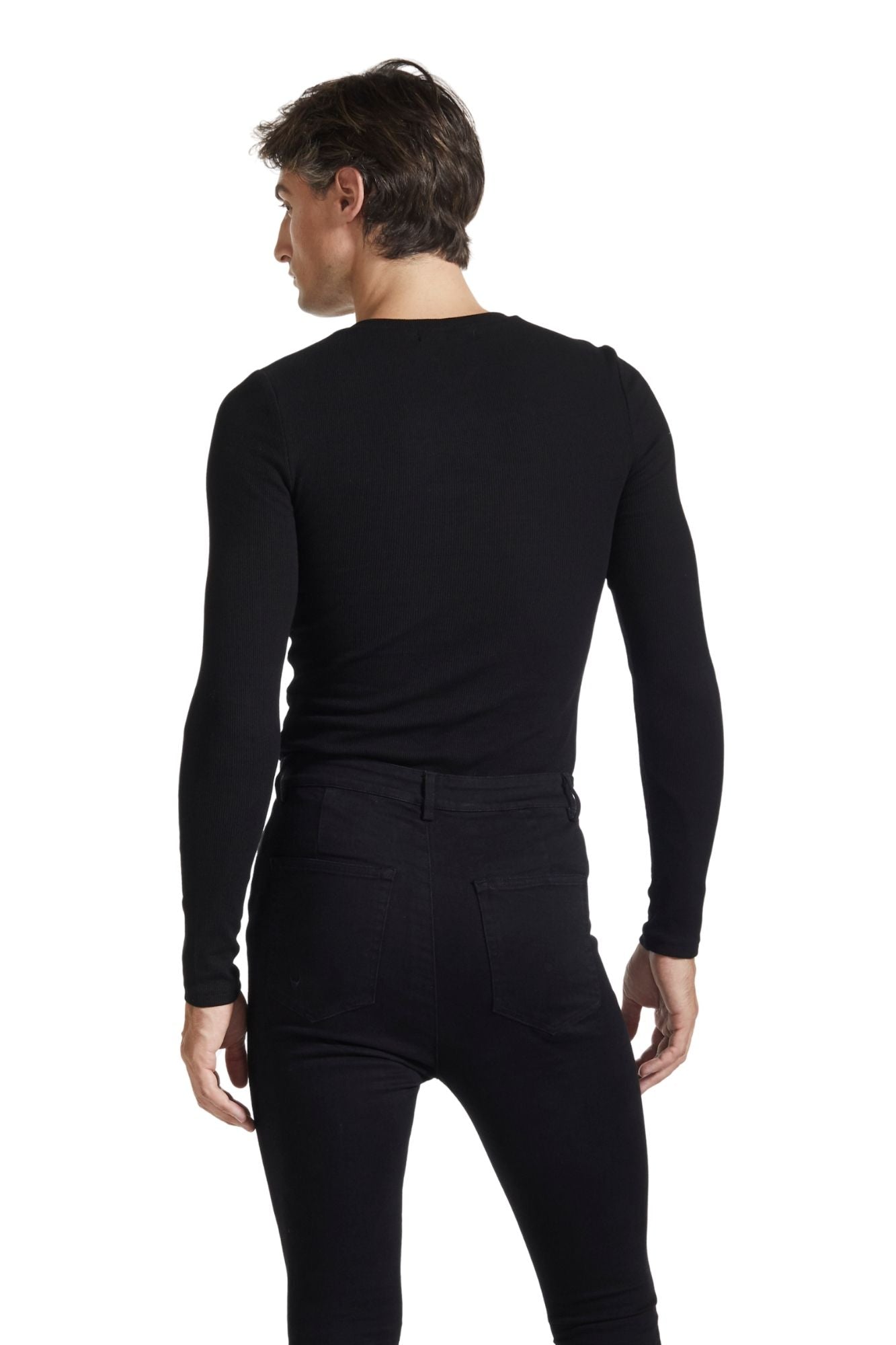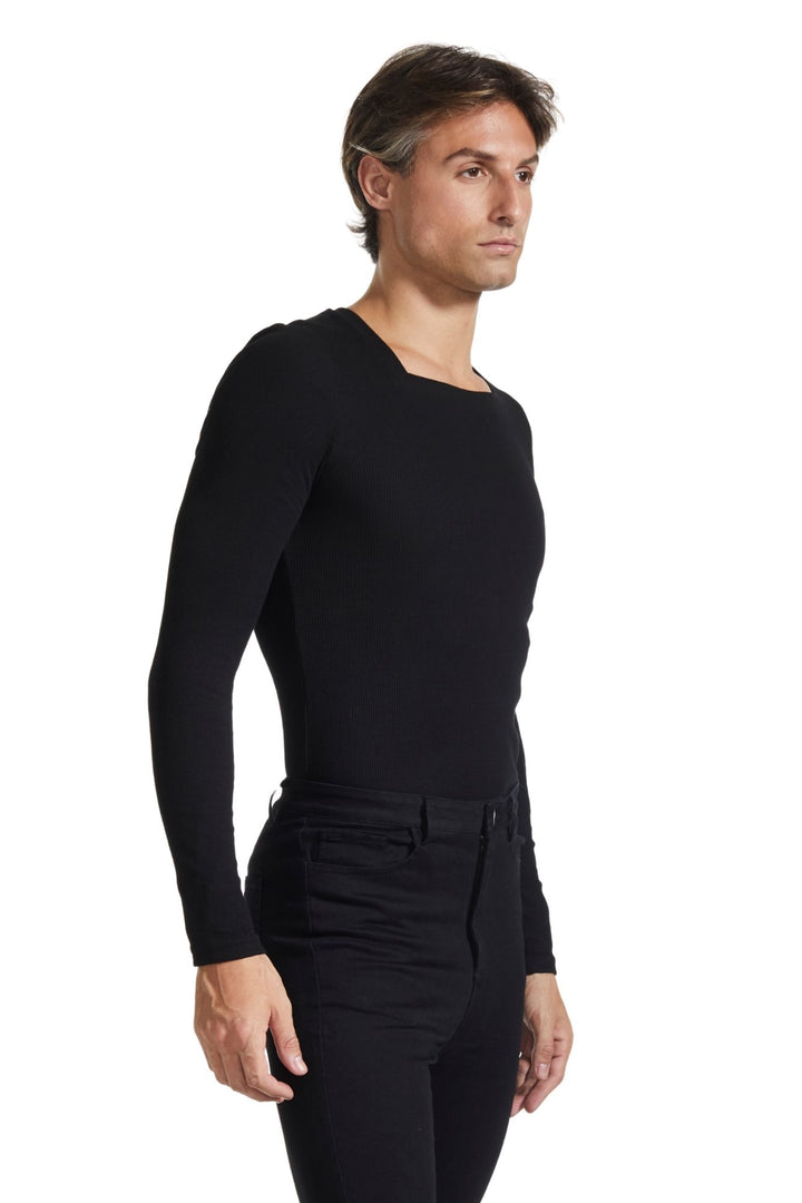 Our signature square neckline now is available as a long sleeve. The ultra-comfortable ribbed fabric in premium cotton hugs and contours the body in a satisfying way. Offered in three colors: black, light blue, and mint. Cut for a close, next-to-skin fit.