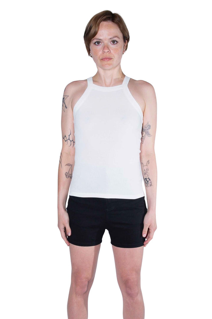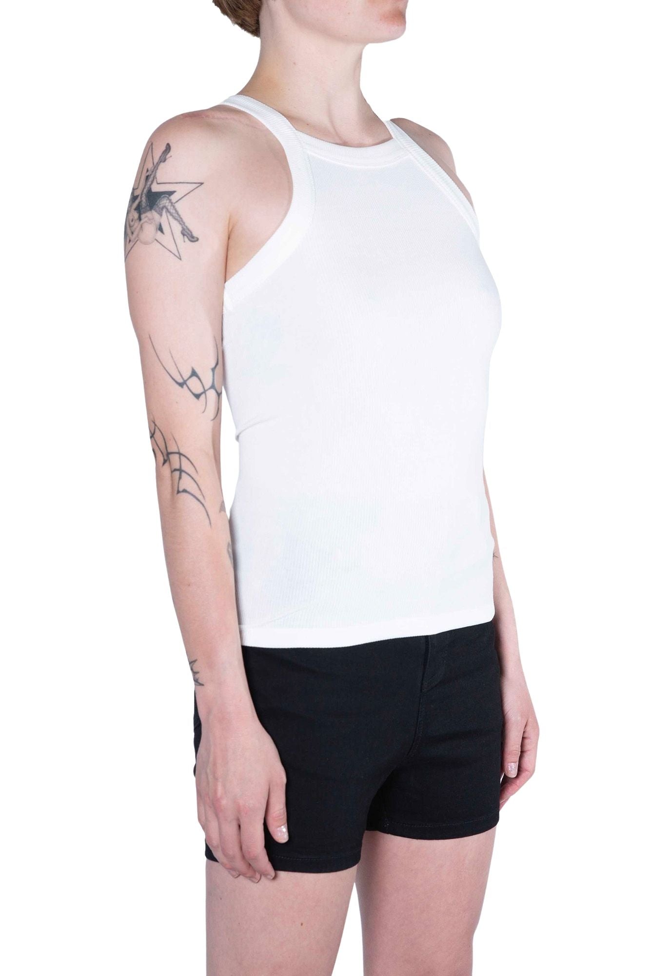Our take on the classic tank top with a square neckline brings to mind the silhouette of a singlet and other activewear. Form-fitting and featuring our logo embroidery. Cut for a close, next-to-skin fit.