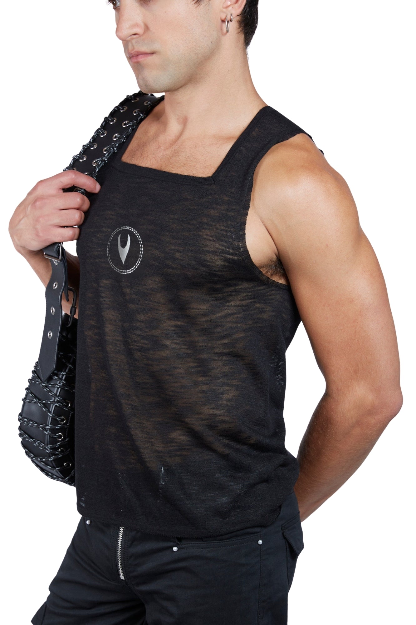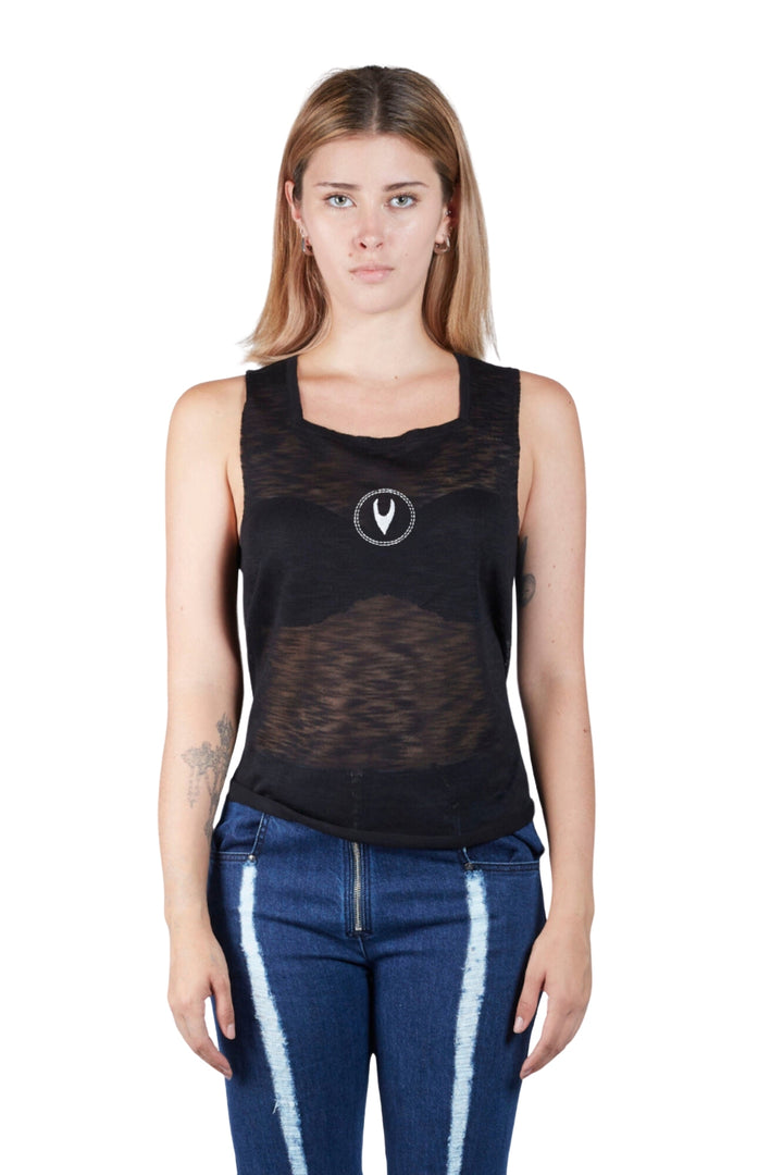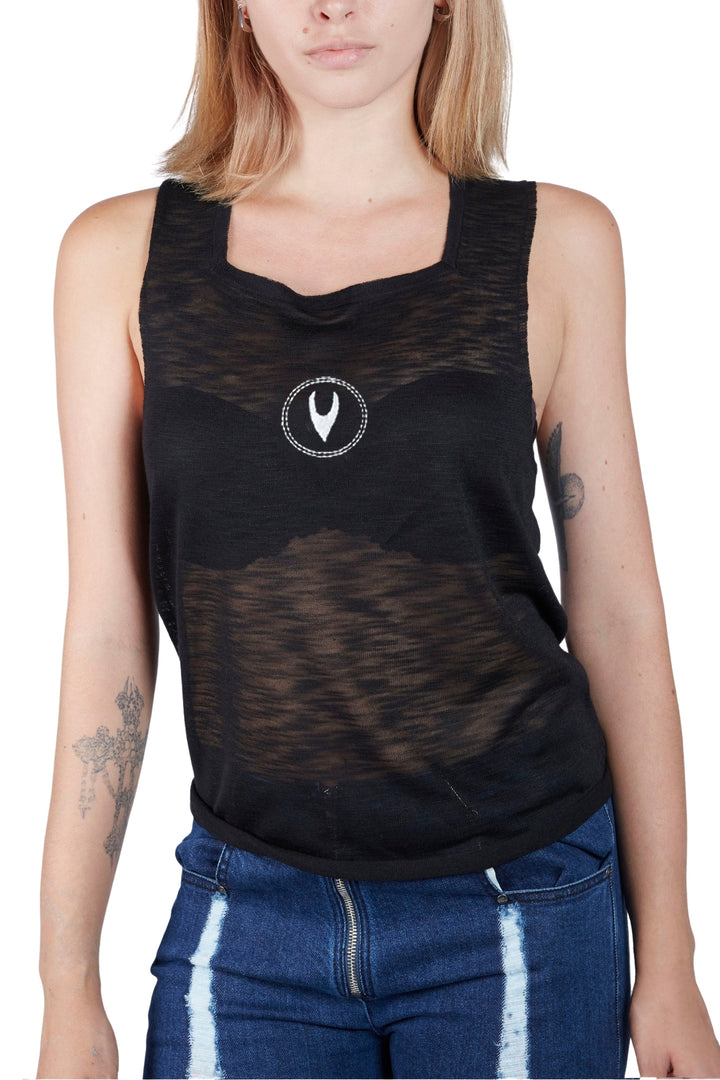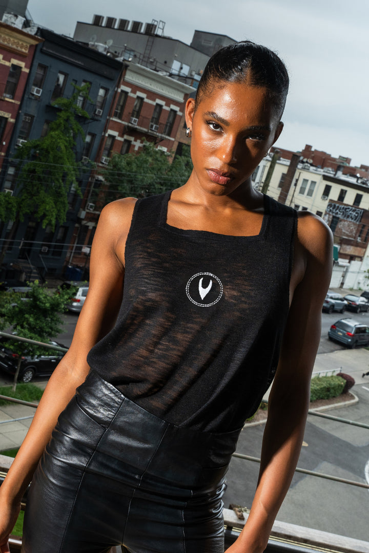 Lightweight, second-skin tank made with zero-waste seamless 3D knitting technique. Featuring our signature square neckline, logo embroidery at center front, and a custom carabiner at center back for easy hanging. Designed for a breathable and relaxed styling.