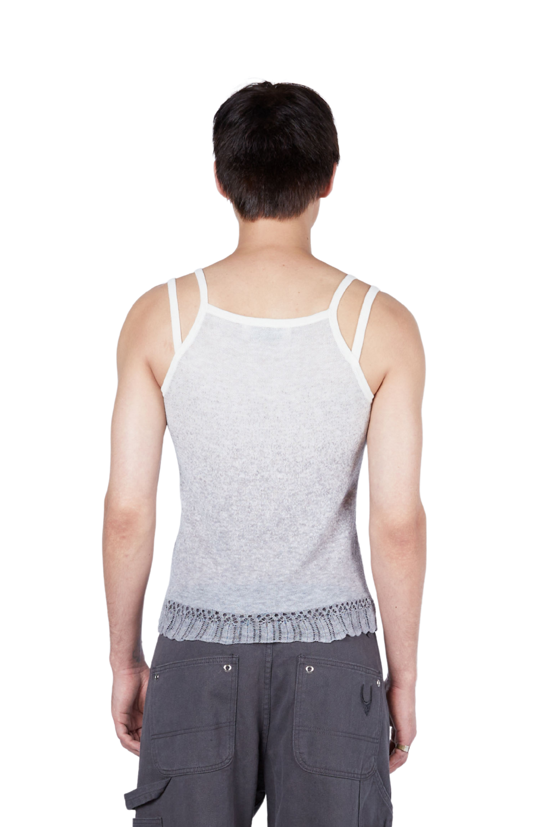 Double-strap tank with a clean square neckline and a body-skimming silhouette. Designed with the intarsia technique for a gradient effect and a custom knit lace at the trim.