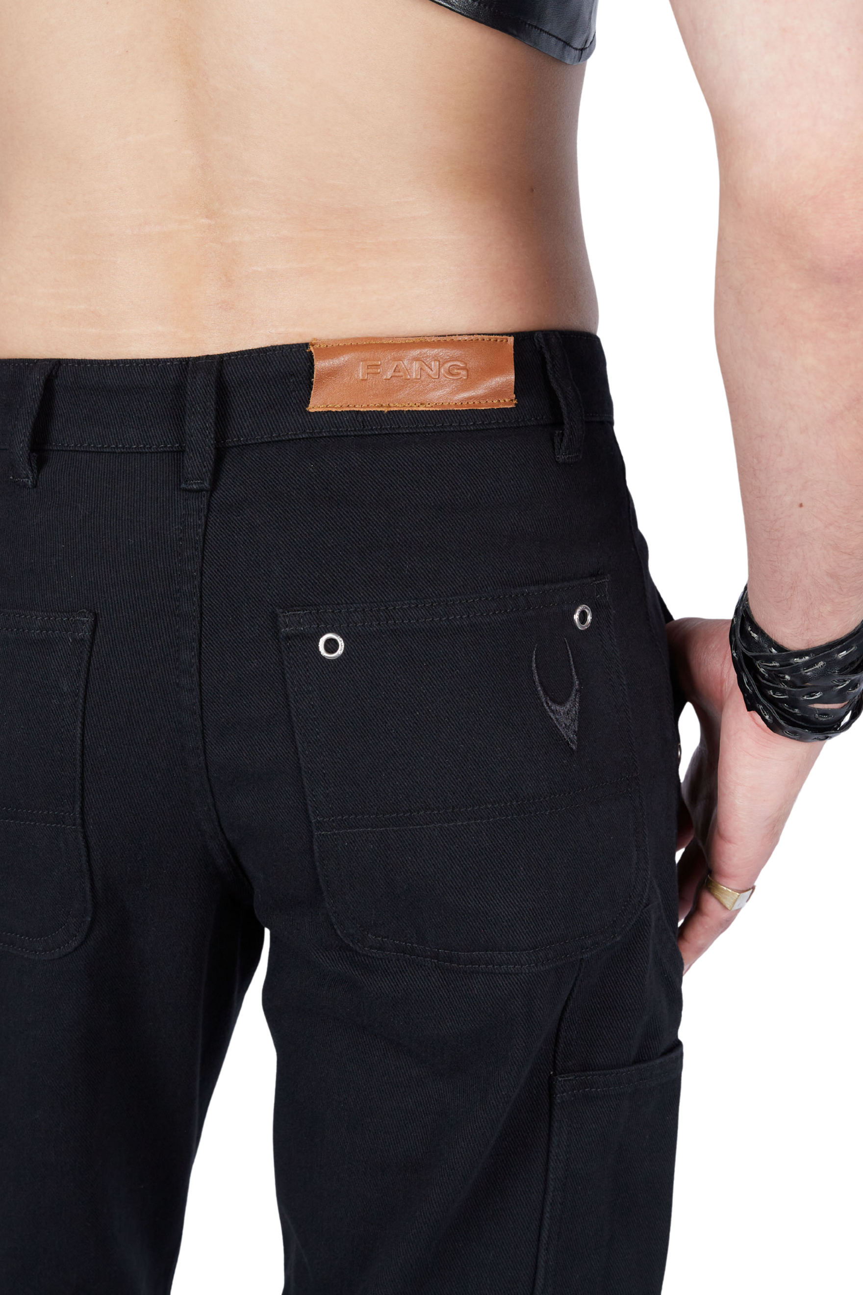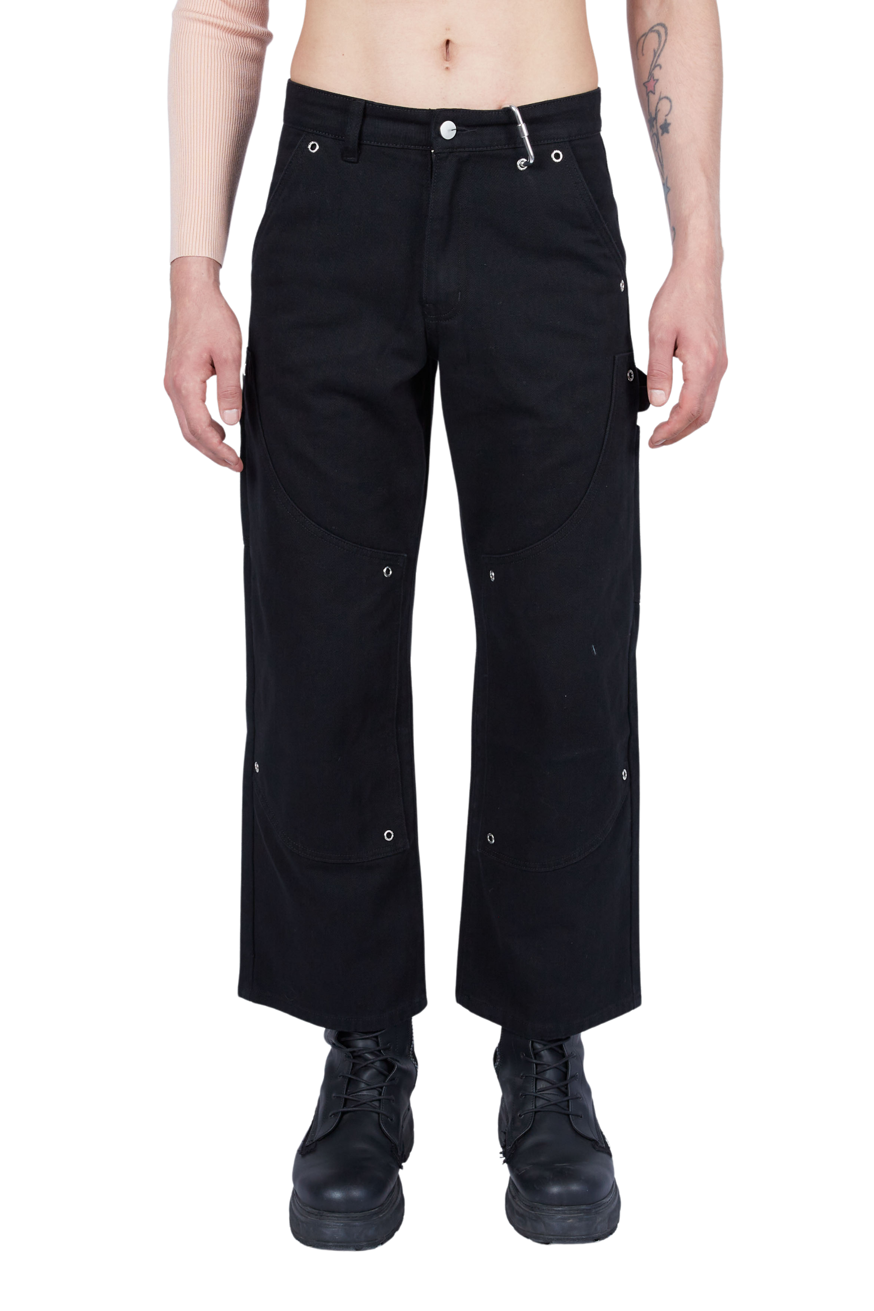 Carpenter Pants with a straight leg and reinforced double-knee panels. Finished with grommet detailing down the leg.