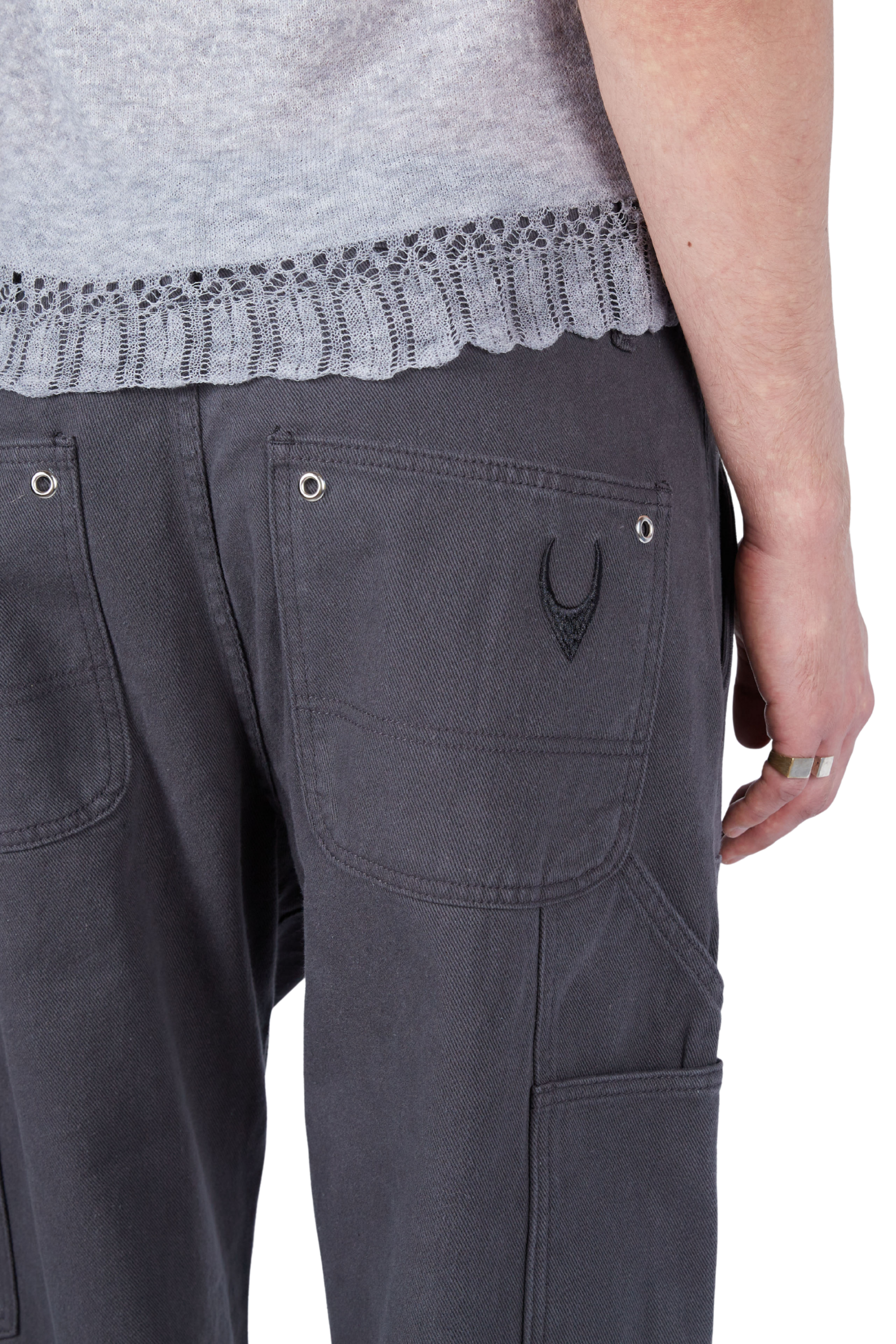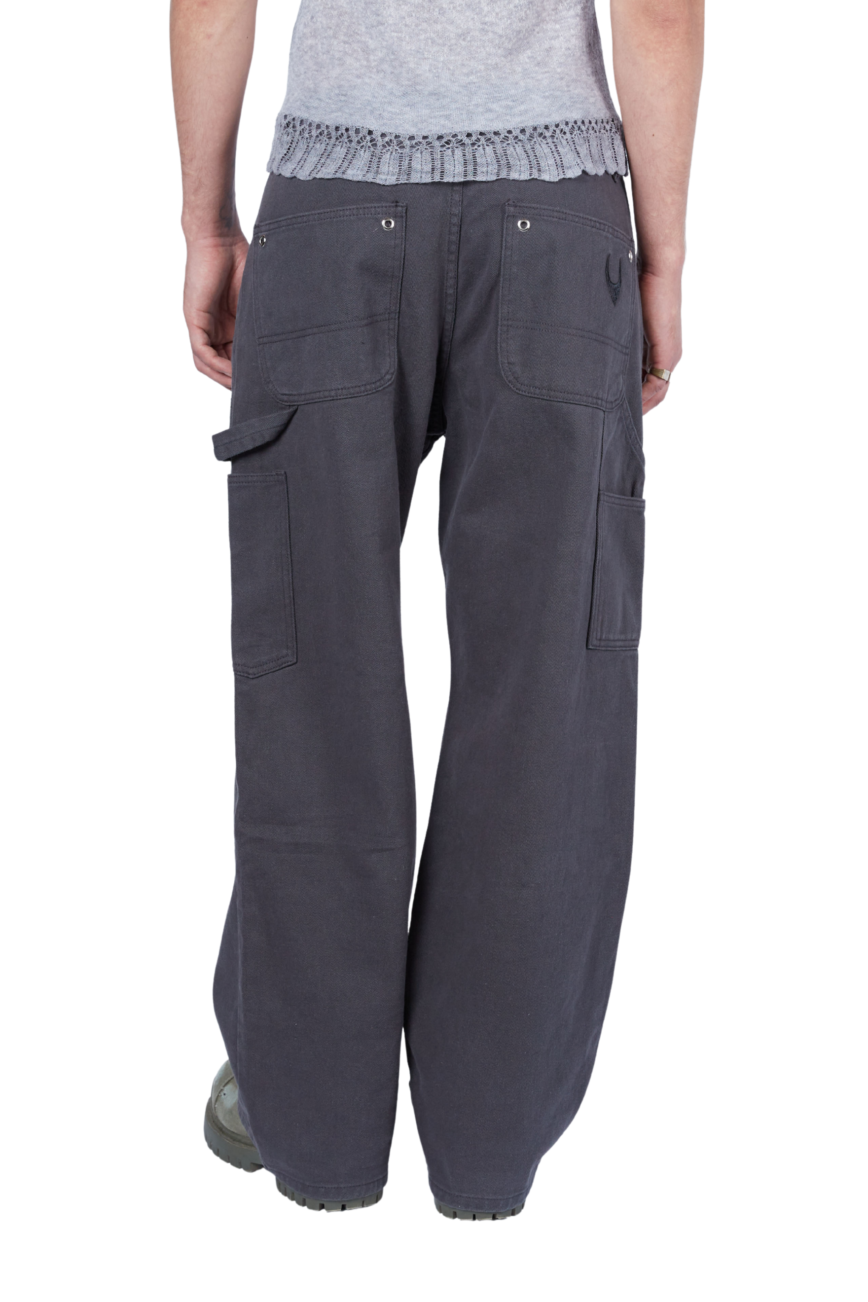 Carpenter Pants with a straight leg and reinforced double-knee panels. Finished with grommet detailing down the leg.