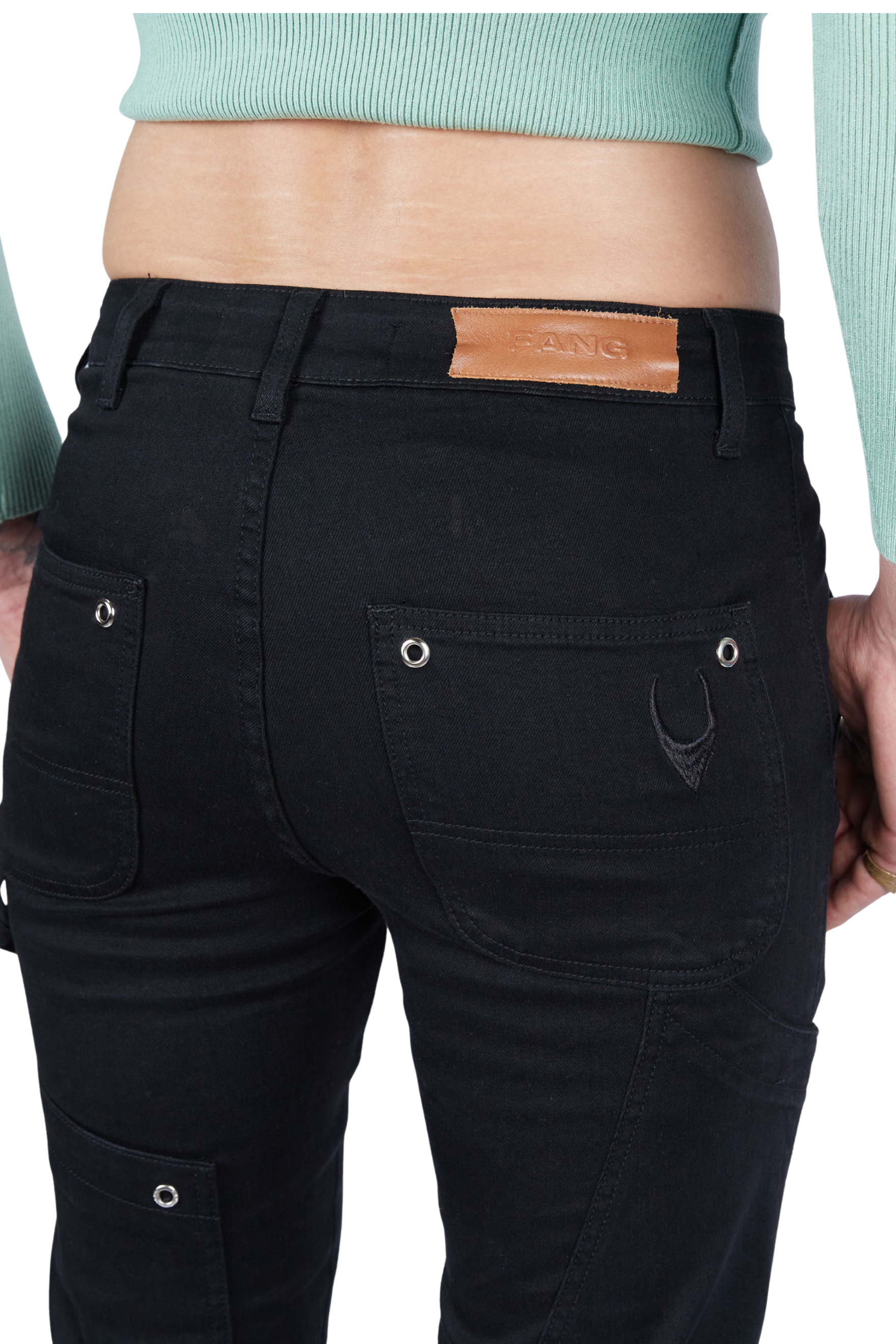 A sleek, utility-inspired pant, featuring double-knee paneling accented with grommets, plus subtle hardware details. Designed with a skinny fit.