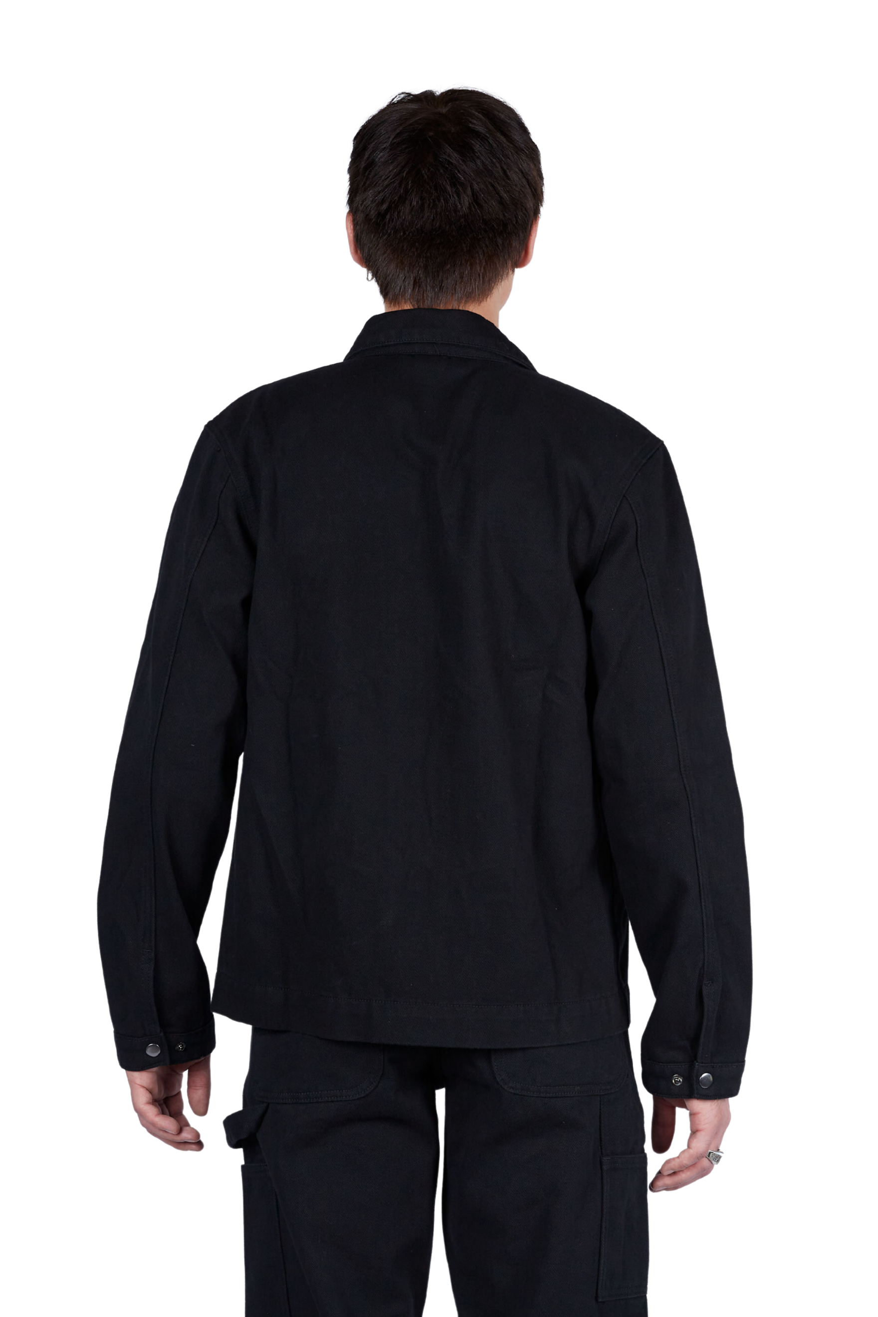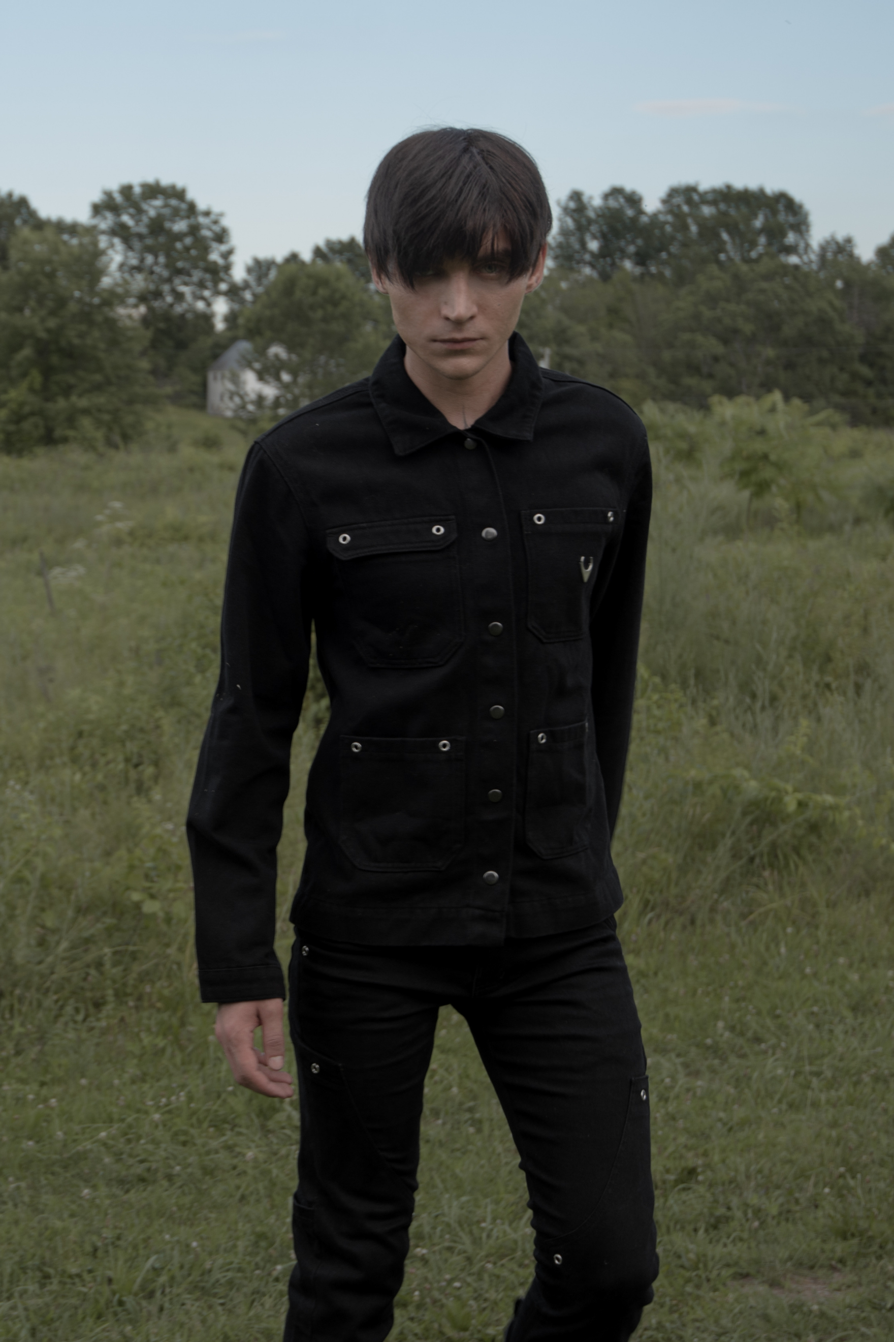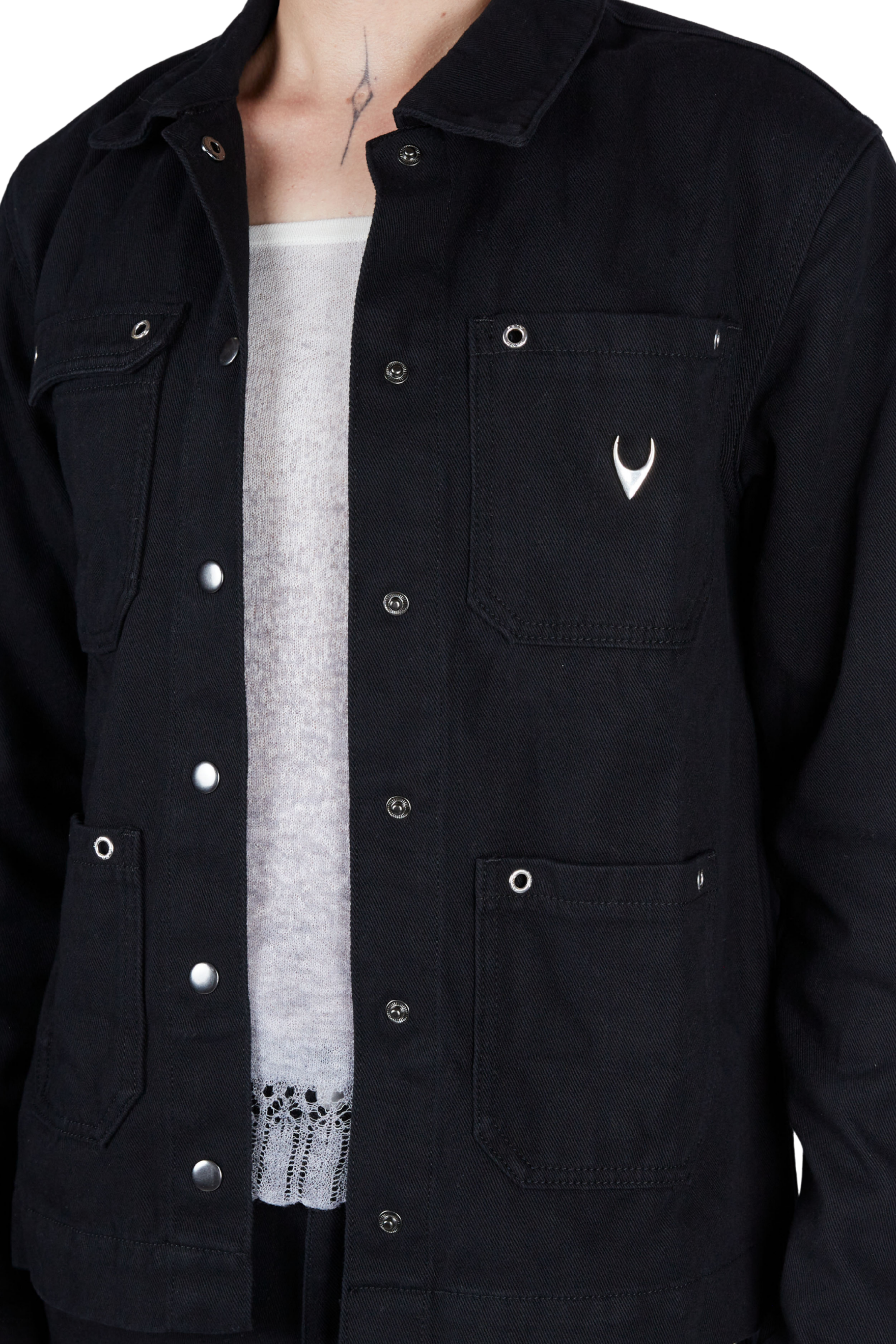 A clean-cut jacket with a sharp, pointed collar and a structured, symmetrical silhouette. Finished with our logo and subtle grommet detailing throughout.