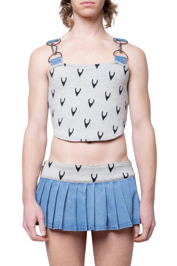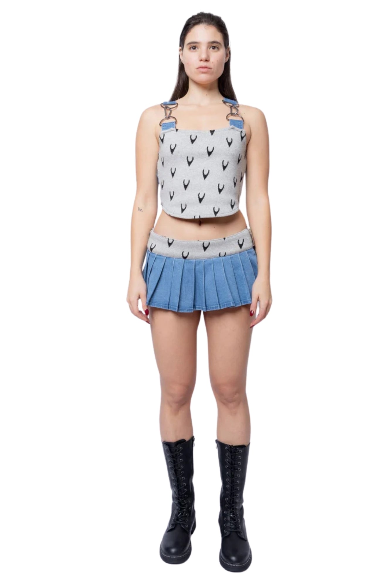 Jacquard Knit/Denim Mix Media FANG Mini Skirt