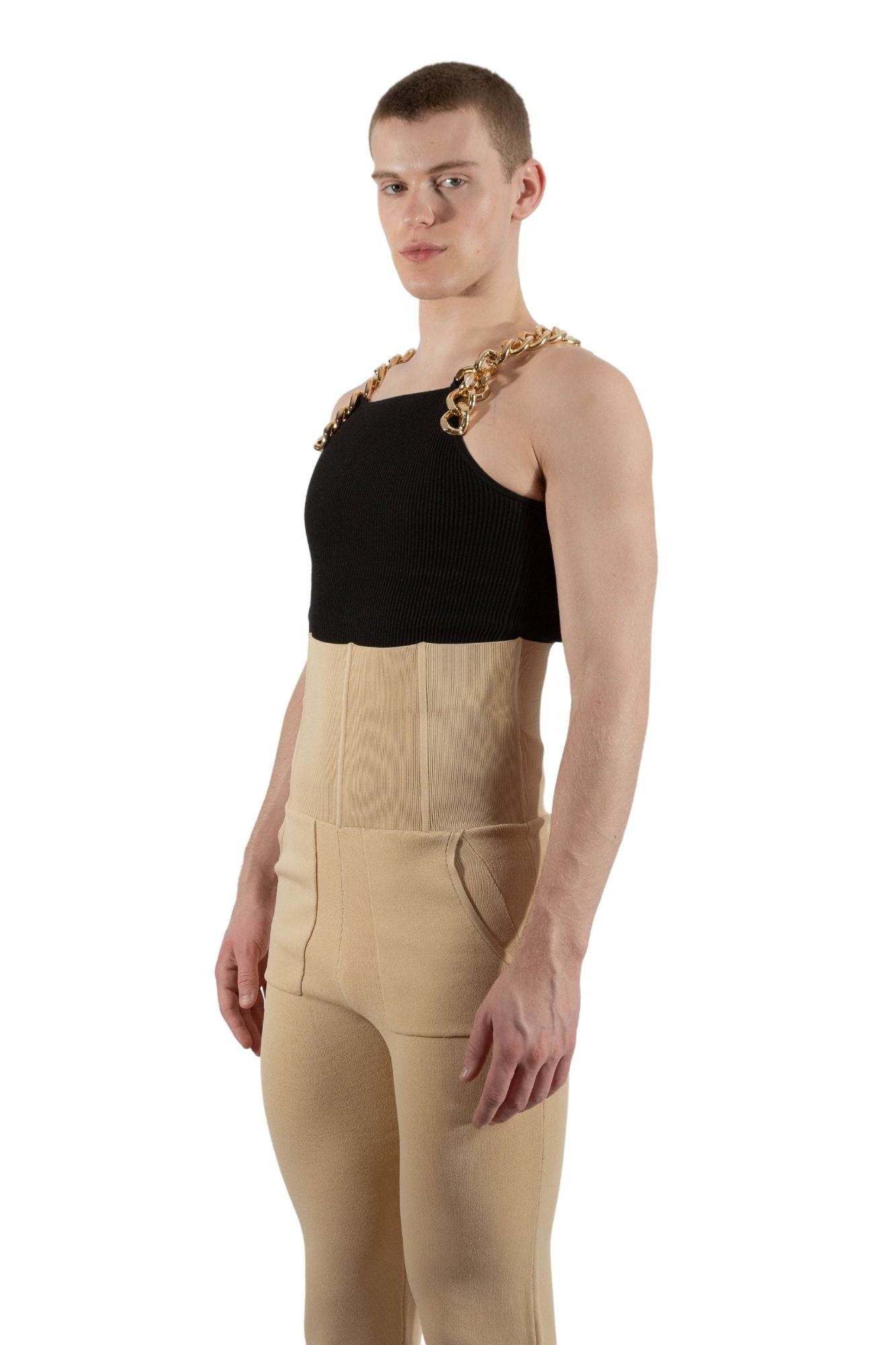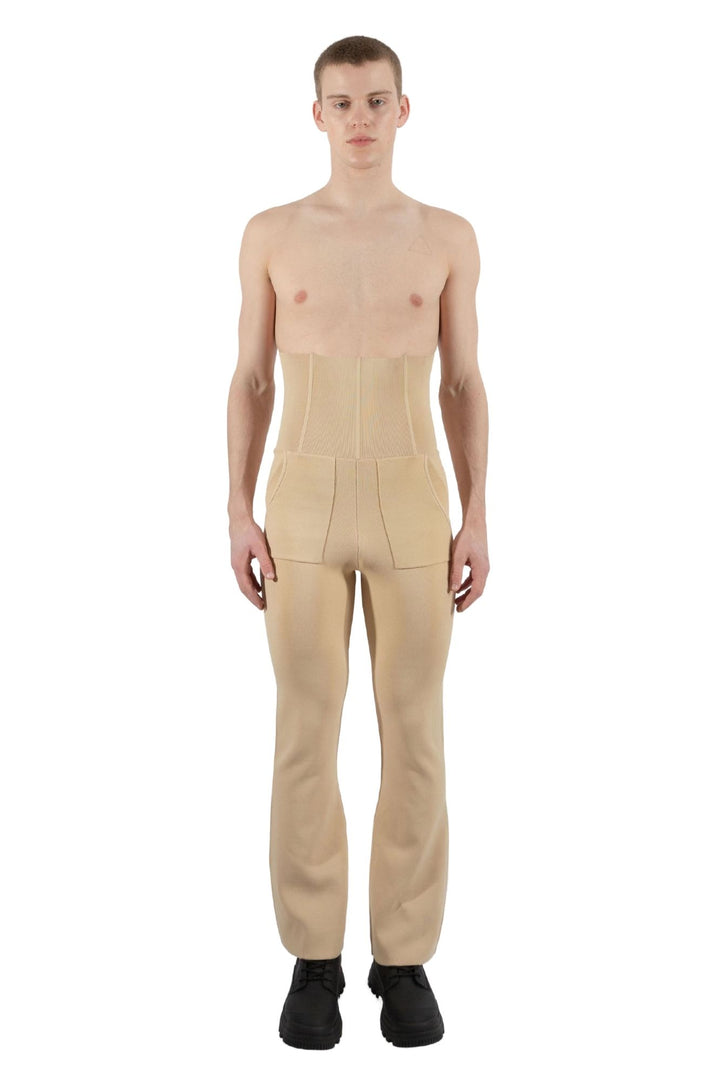 Knitted High-Waisted Corset Pants Beige