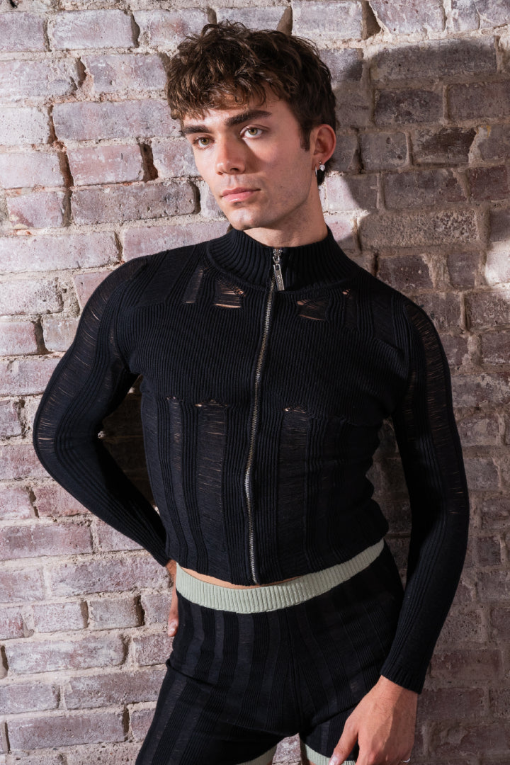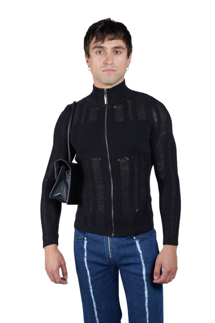 Ladder Stitch Knit Zip-Up