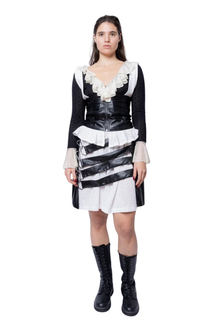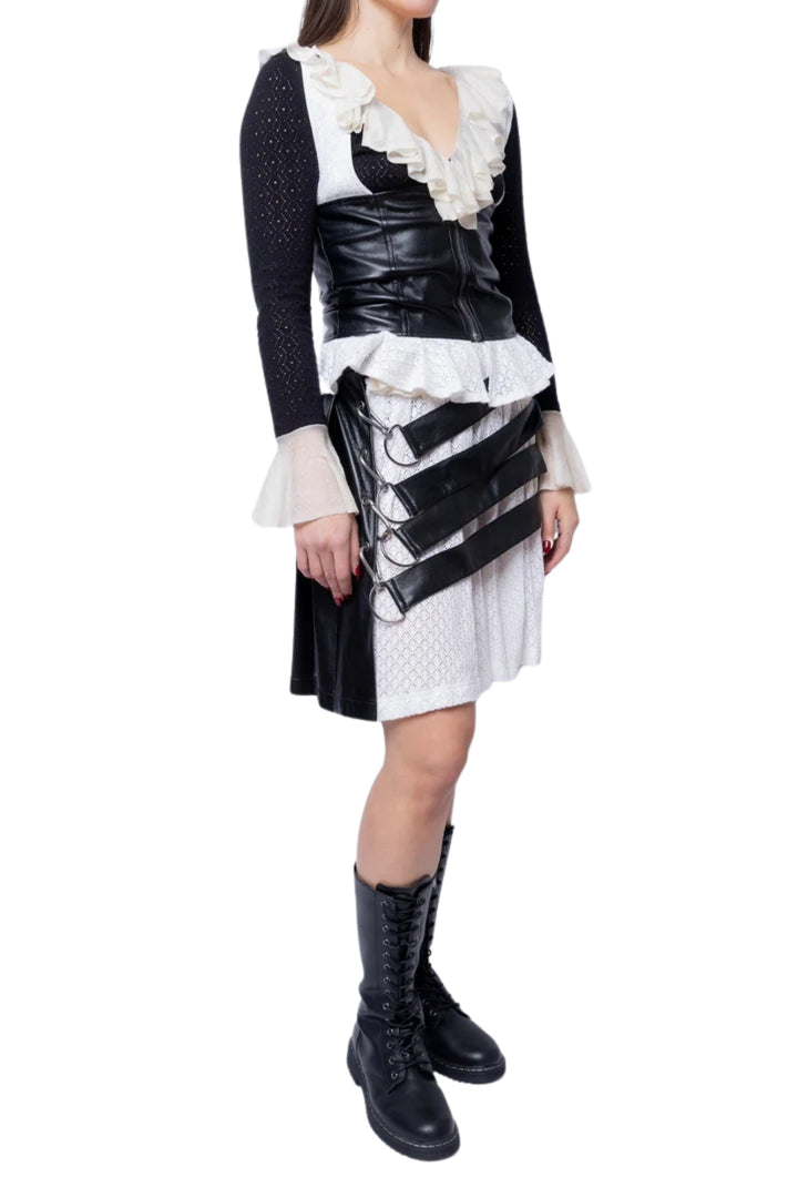 Complete the look with Pointelle/ Leather Mix Media Corset and Pointelle Cardigan with Ruffles.