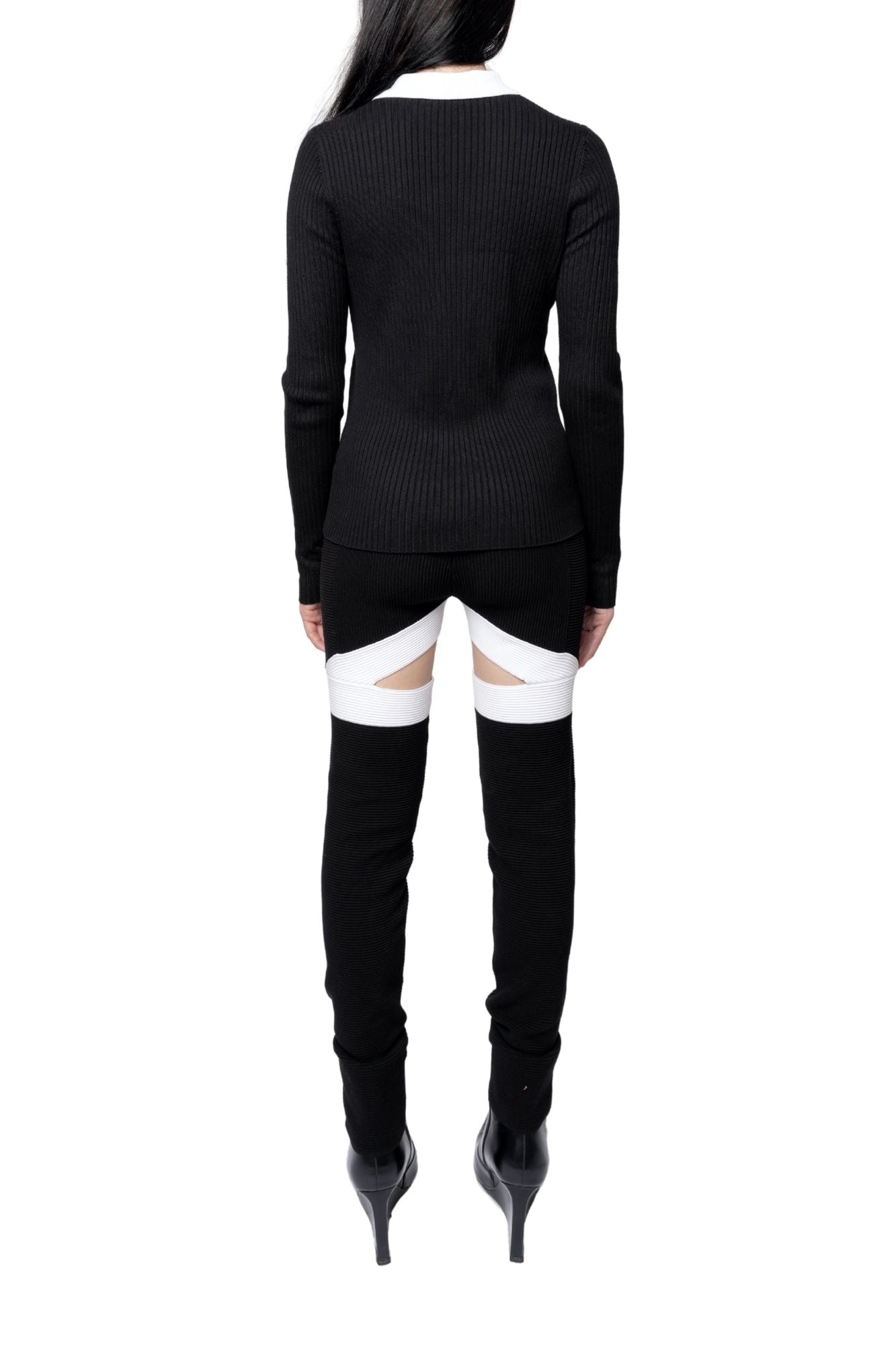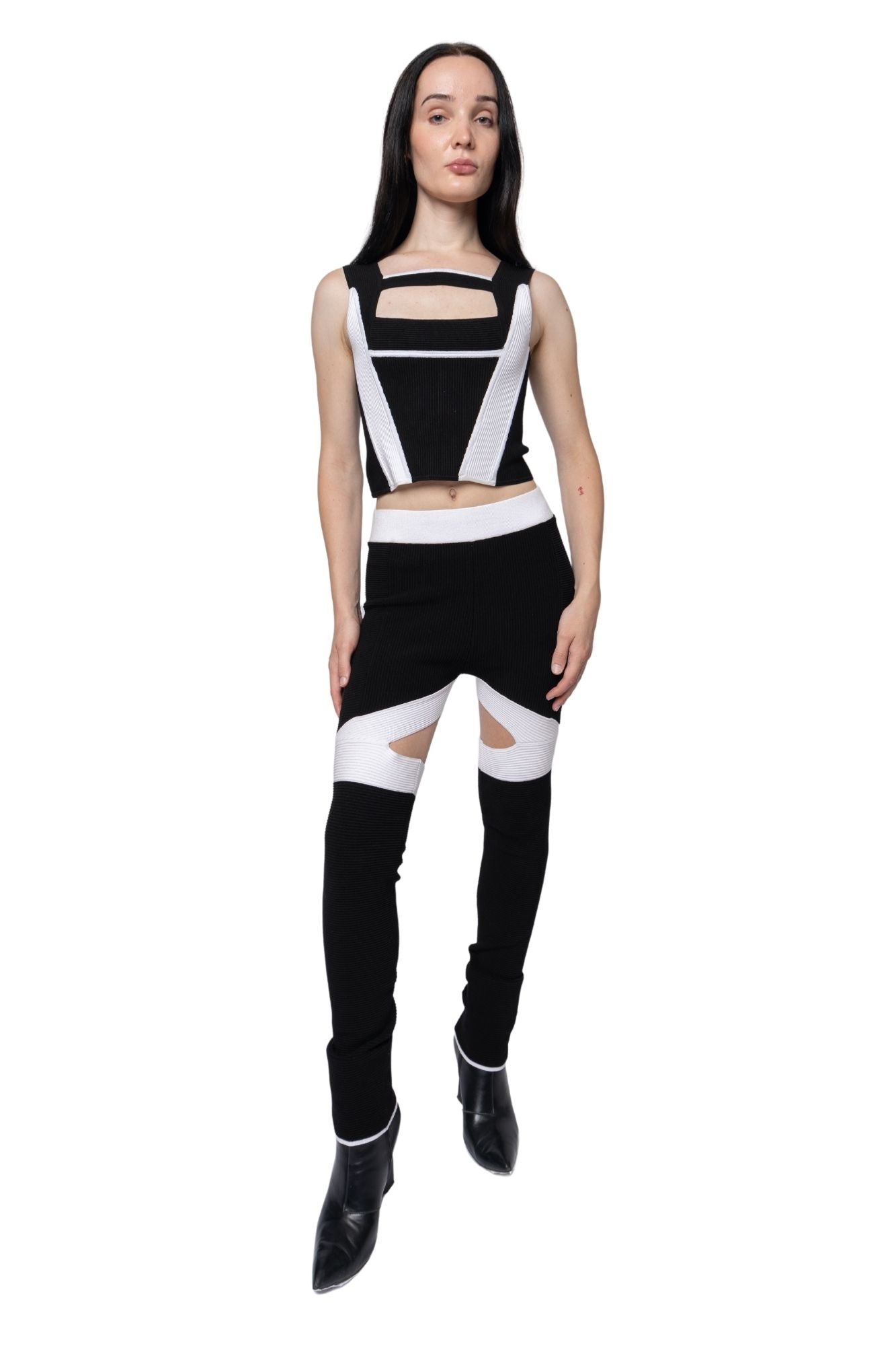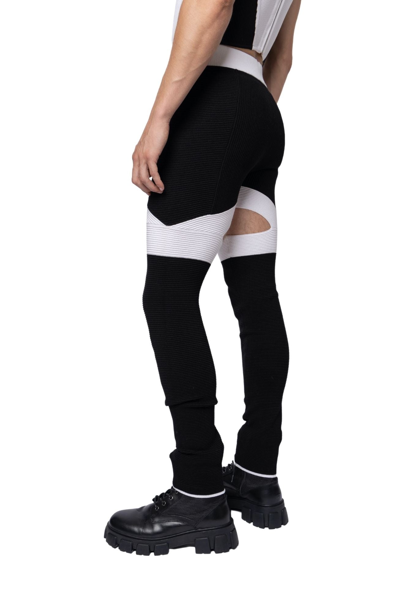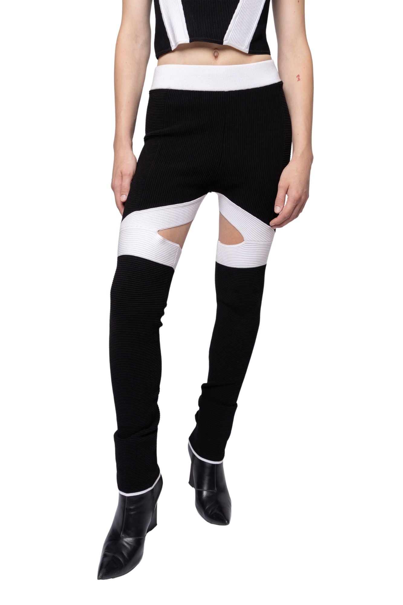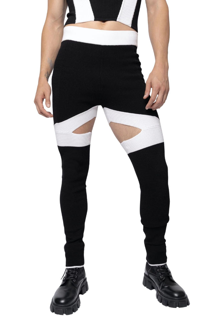 Ribbed Cut-Out Panel Pants Black/White