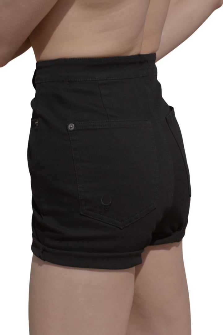We love short shorts! The High-Waisted Short Shorts is our creative take on the staple clothing item and a must-have for your wardrobe. In a classic and versatile black colorway, the jean shorts are high-stretch yet form-fitting with a high-rise to revolutionize men's proportions. Your ultimate everyday jean shorts that are comfortable, minimal, and with mindful details. Featuring belt loops, a front zip fly, a five-pocket styling, and our logo embroidery on the back left pocket.